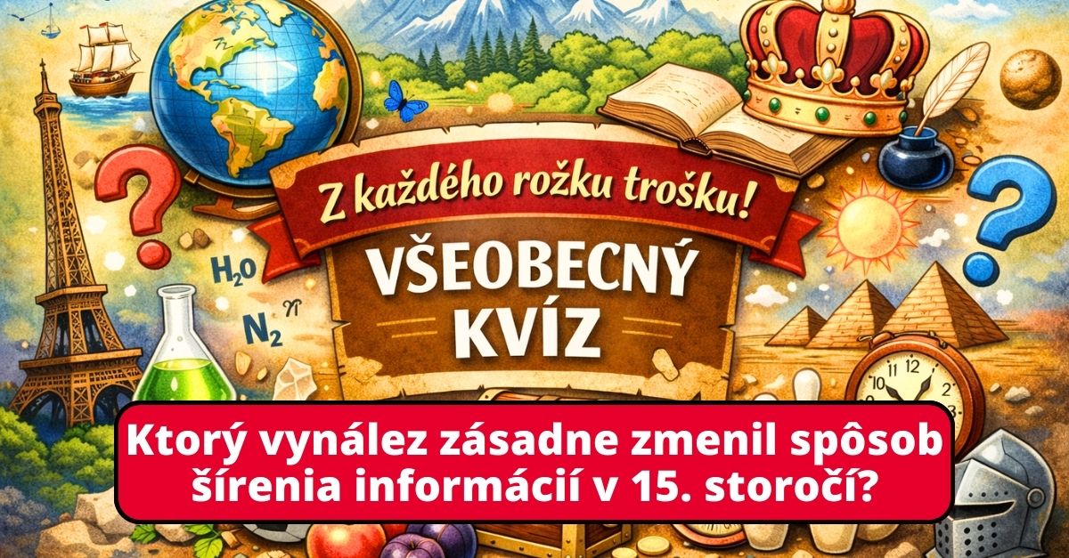 Pripravili sme si pre Vás všeobecný vedomostný kvíz „Z každého rožku trošku“, ktorý preverí Vaše znalosti z rôznych oblastí – od slovenskej a svetovej geografie, cez históriu, až po bežné fakty z každodenného života.